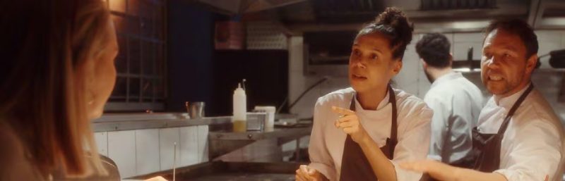 Approdato alla regia con alle spalle un’attività quasi trentennale di attore (ma non solo), l’inglese Barantini riprende in mano l’idea di un precedente corto per questo lungometraggio che sceglie la difficile, ma coraggiosa strada del piano sequenza unico. Reale, senza quei necessari o astuti stacchi di montaggio che da Hitchcock a Inarritu alcuni cineasti hanno adottato. A mio avviso la forma di ripresa cinematografica più vicina alla performance teatrale, scevra dalla comodità del singolo e reiterato take e oberata della responsabilità / missione di concludere un atto barcamenandosi tra qualsiasi imprevisto di scena. E quasi a memoria di questa constatazione non sono certo gli imprevisti che mancano nel corso del film, frenetico, ma ben concertato, ove l’unico momento di riposo (leggi “crollo”) è solo quello che sembra introdurre un prosieguo, ma che altro non è che il catartico preambolo di un beffardo, cinico epilogo. Assolutamente delizioso l’intersecante quadro, quasi documentaristico, di tutte quelle realtà umane (dal parvenu cafone e razzista agli inappropriati influencer in delirio da protagonismo) che affollano il ristorante stellato; struttura che nella sua ampiezza situazionale costituisce pressoché la location unica di una rappresentazione tragicomica. Graham -così come la Robinson, su un registro diverso- offre una prova attoriale che non dimentica la verità anche quando il parossismo minaccia (re)azioni sopra le righe. Ma a onor del vero l’intera direzione attoriale è degna di plauso grazie a una scelta di casting ove la diversità fisica va ben oltre la coercizione inclusivista e fa della diversità culturale e umana un potente strumento di scrittura dei singoli personaggi: importanti tasselli in lavori di narrazione e costruzione corale come questo.